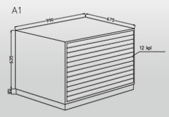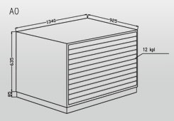 The standard set of drawer cabinets for drawings and maps consist 12 drawers with inside height of 37 mm. Drawers has ball bearing rails with ~85% extension. Drawer cabinets can be equipped with laminated plate to gain an extra table.